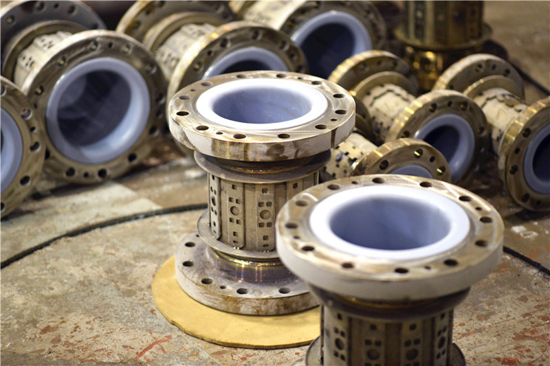 篩網(wǎng)式鋼襯四氟管線鋼斜管設(shè)有網(wǎng)孔,鋼斜管內(nèi)外壁緊密覆蓋襯四氟層,內(nèi)外壁上的四氟乙烯層通過網(wǎng)孔粘合。篩管鋼襯四氟管道主要由鋼支撐作為底模,強度好,不易變形和斷裂,耐腐蝕性能完全滿足生產(chǎn)工藝要求。同時,它還具有重量輕、安裝維護方便、價格便宜、使用壽命長的特點。該金屬絲網(wǎng)包括金屬絲網(wǎng)體和焊接腳,金屬絲網(wǎng)通過焊接腳焊接在管道內(nèi)壁上固定在管道內(nèi)壁上,金屬絲網(wǎng)體與管道內(nèi)壁之間留有間隙。這種結(jié)構(gòu)的管道可以防止附著在管道內(nèi)壁上的四氟材料層在加工和使用過程中收縮變形而導(dǎo)致管道內(nèi)壁嚴重脫落。